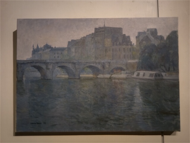 冬のパリのセ一ヌ川河畔。かすかにポン・ヌフと呼ばれる古い石橋(油彩画、キャンバス)