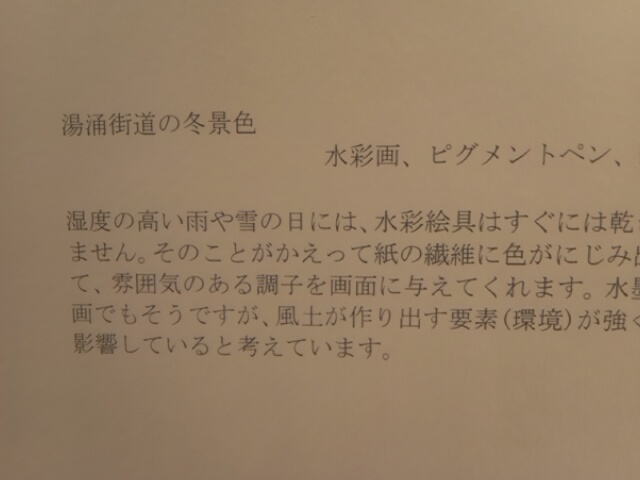 雪の日は湿度が高く、水彩絵具の乾きが鈍い