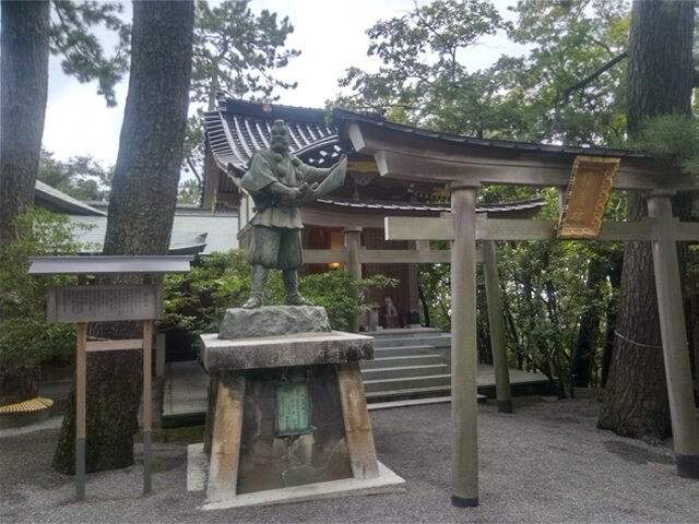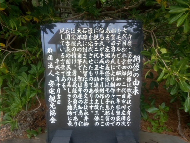 ==安宅神社拝殿近くの弁慶像の近くで浪曲「勧進帳」を唸る==